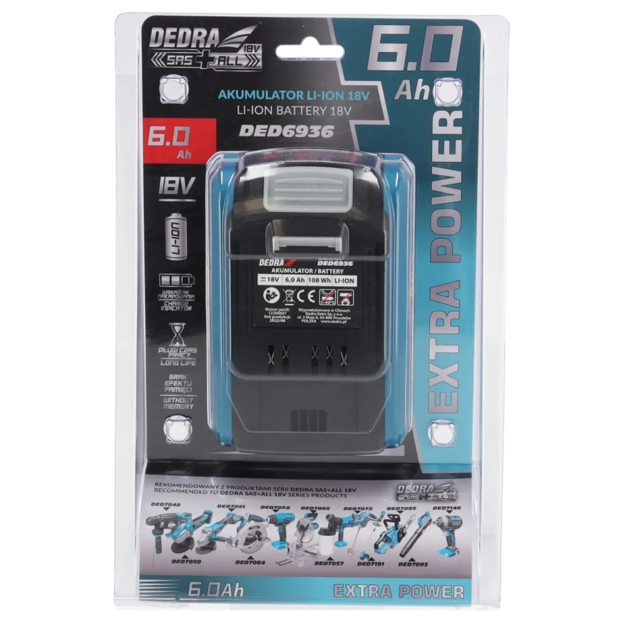 Akumulátor 6,0 Ah 18V, lítium-iónový Li-Ion, séria SAS ALL, indikátor stavu nabitia akumulátora