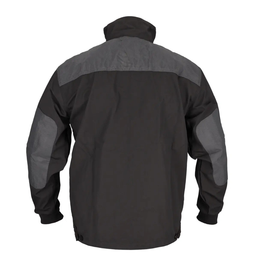 Zloženie materiálu: 65% polyester + 35% bavlna, gramáž 265g/m², špeciálne vrecko na telefón, zips s pogumovanou rukoväťou s logom, sieťované vetracie otvory na zips, zosilnená tkanina na lakťoch, vreckách a sedle, rebrované rukávy, nastavenie šírky v spodnej časti blúzky pomocou gombíkov, identifikačná visačka na krku, pogumované logo na ľavom vrecku