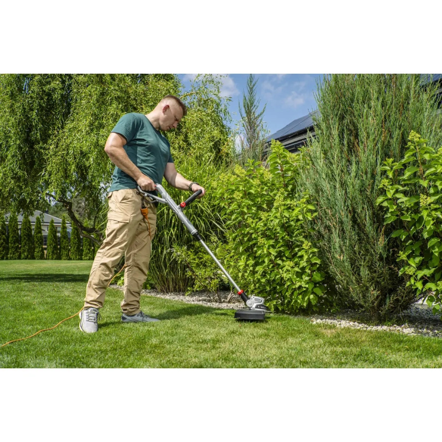 Príkon 550 W, Uhlová rýchlosť 10 000 min-1, šírka kosenia 300 mm, systém automatického vysúvania struny, priemer struny 1,6 mm, v súprave: dvojitá nylónová struna 2 x 6 m, teleskopická hliníková násada, dodatočná nastaviteľná rúčka, hlava s nastaviteľným uhlom, okrajový obmedzovač.