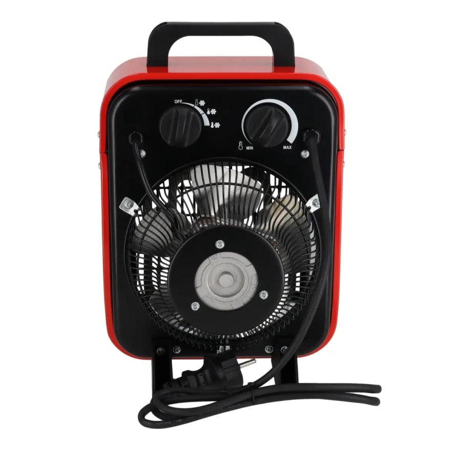 Príkon: 1000 W/2000 W; prietok vzduchu 400 m3/h; zásuvka 230 V; ochrana proti prehriatiu; termostat; 3 prevádzkové režimy: chladný/teplý/horký
