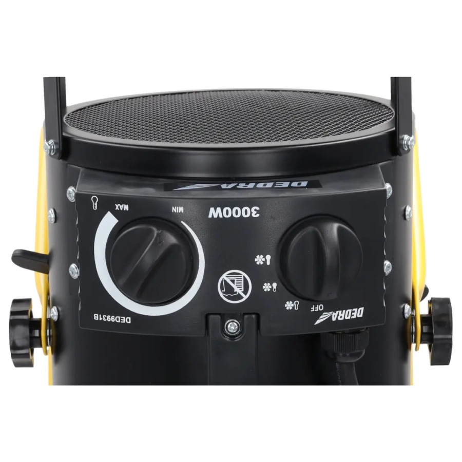 Príkon: 1500/3000 W; prietok vzduchu 354 m3/h; výstup 230 V; ochrana proti prehriatiu; termostat; 3 prevádzkové režimy: chladný/teplý/horúci