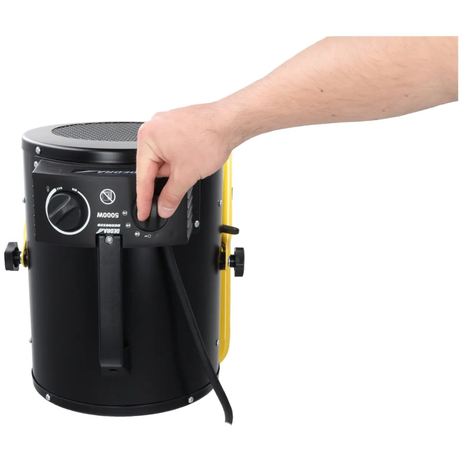 Výkon: 2500/5000 W; prietok vzduchu 366 m3/h; 3-fázová zásuvka 400 V; ochrana proti prehriatiu; termostat; 3 prevádzkové režimy: chladný/teplý/horúci