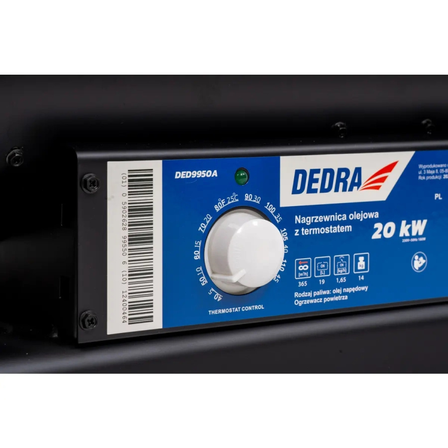 Výkon: 20 kW; energetická trieda: A; spotreba paliva: prietok vzduchu 365 m3/h; nádrž 19 l; regulácia teploty