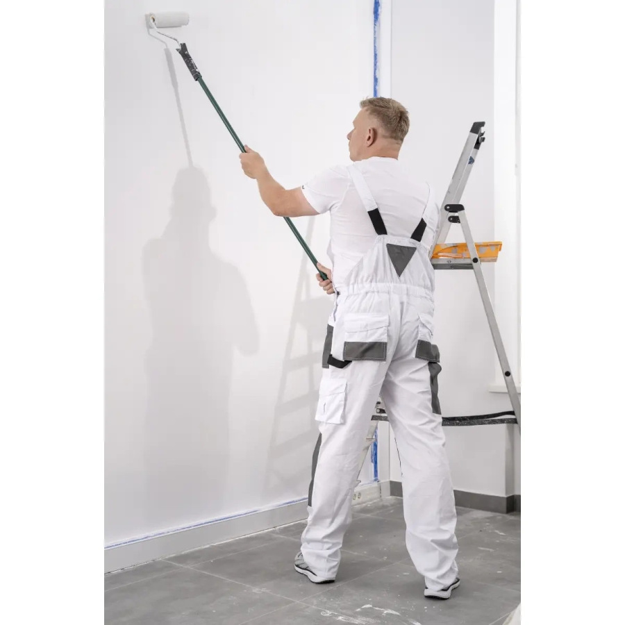 Materiál: 20 % bavlna/80 % polyester; hmotnosť 190 g/m²; norma EN ISO 13688:2013; 9 vreciek, z toho 7 na suchý zips; vystužené vrecká na kolená; krúžok na kľúče; pútko na kladivo