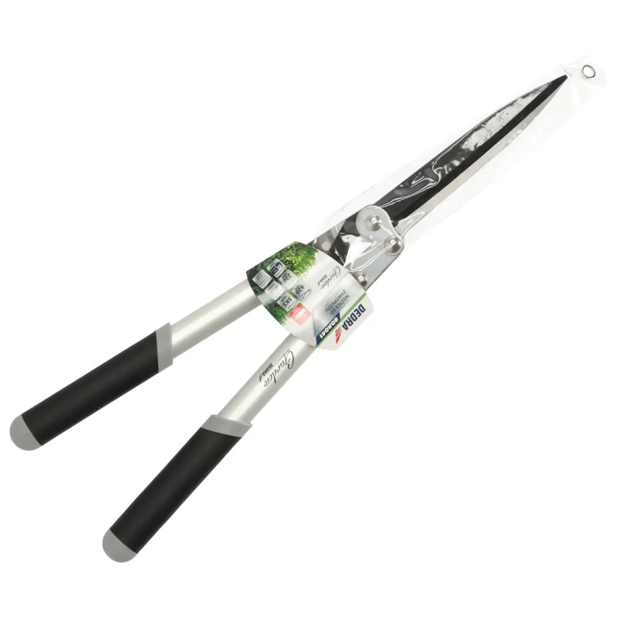 čepele vyrobené z ocele SK5, jedna čepeľ potiahnutá teflónom, hliníkové rukoväte PP + TPR, celková dĺžka výrobku 620mm, dĺžka čepele 220 mm
