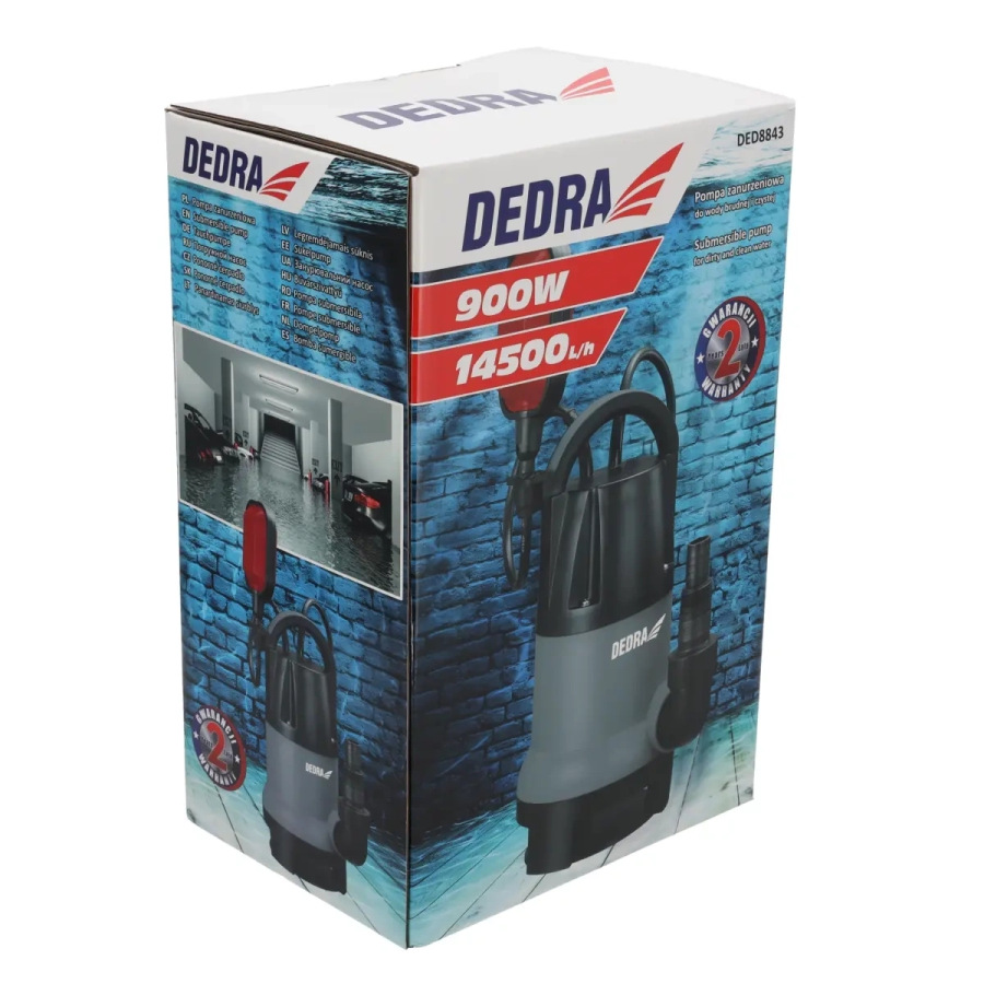 Príkon 900 W, prietok 14 500 l/h, max. hĺbka ponoru 7 m, max. výška 9 m, priemer pripojenia 1", 5/4", 3/2", krytie IPX9
