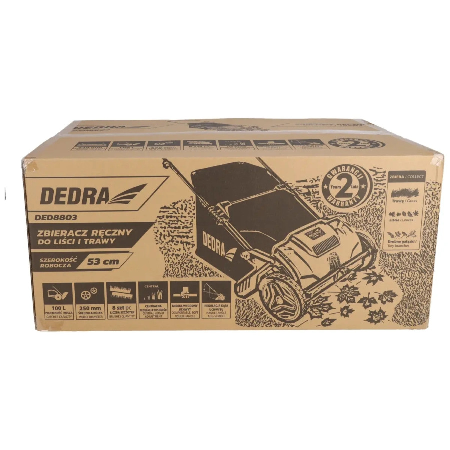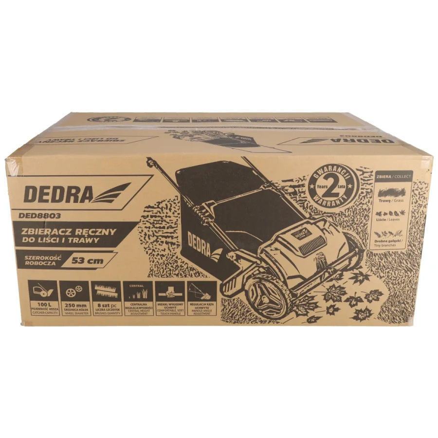 Pracovná šírka: 530 mm; priemer kolies: 25 cm; objem zásobníka: 100 l; 8 kief na zber lístia, trávy a malých vetvičiek; centrálne nastavenie výšky; mäkká pohodlná rukoväť; zabudovaný zásobník na odpad